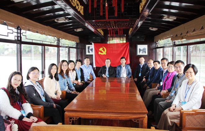 在喜迎党的十九大召开之际,10月13日,规划发展处党支部赴嘉兴南湖开展主题党日活动——重走“一大”路,弘扬“红船精神”。规划发展处处长、党支部书记杨颉主持活动,党支部全体党员、规划发展处(改革与发展研究室、211/985工程办公室)全体成员和挂职干部出席。活动包括“听一次党课、瞻仰一次红船、看一次展览、学一次党章、看一次专题片、重温一次入党誓词、开展一次讨论、分享一段学习感悟”等内容,接受革命传统教育,重温建党历史,感悟“红船精神”,坚定理想信念。本次活动由第二党小组蔡蕾等精心策划组织,受到嘉兴市委组织部和市委党校领导的大力支持和高度赞赏。