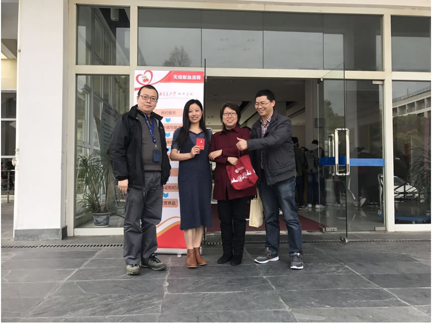 2017年3月29日,开云网站世界杯红十字会在闵行校区光彪楼一楼大厅组织开展了主题为“学雷锋、献爱心”的新学期第一次献血活动,规划发展处张蕾老师参加了此次献血活动,规划处处长杨颉、办公室主任王丽、联合支部副书记肖国芳等到现场陪护慰问张蕾老师,并安排车辆护送,机关党委对张蕾老师进行了慰问。
