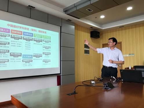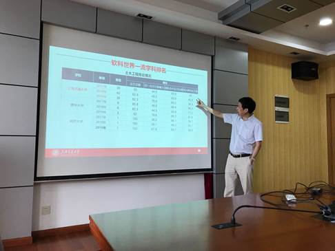 陈建平就船建学院的船舶与海洋工程、土木工程、交通运输工程三个学科近年的四大国际排名情况分别作了深入分析,与标杆院校作了情况对比,对船建学院学科建设和声誉提升提出了针对性建议。