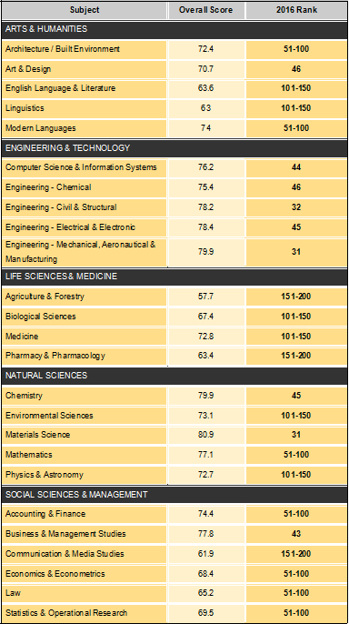 开云网站世界杯入围QS世界大学学科排名情况