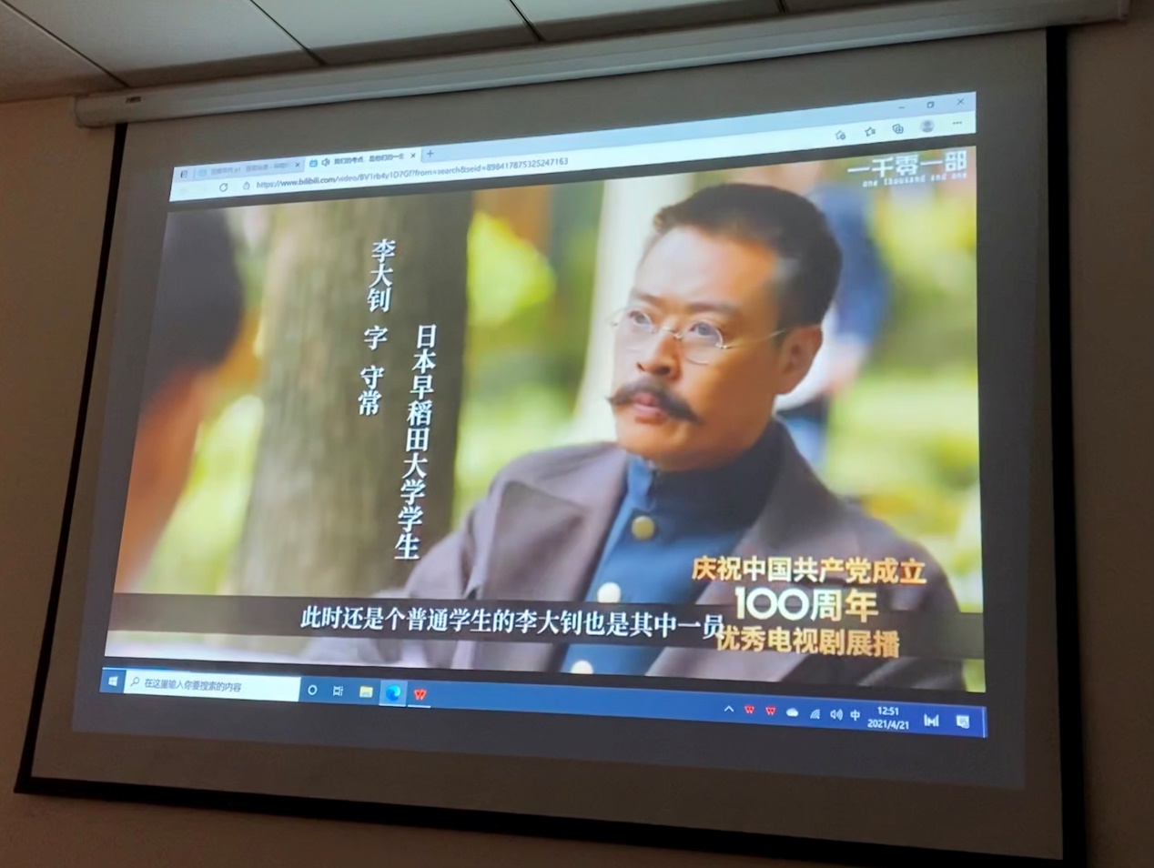 党史学习研讨环节结束后,第一党小组组长杨松为同志们展示了革命历史题材电视剧《觉醒年代》(解说版)片段,短片将史实与影视艺术相结合,描绘了建党前后波澜壮阔的历史画卷,再现了一百年前中国先进青年追求真理、救亡图存的坎坷经历,同志们深受触动。