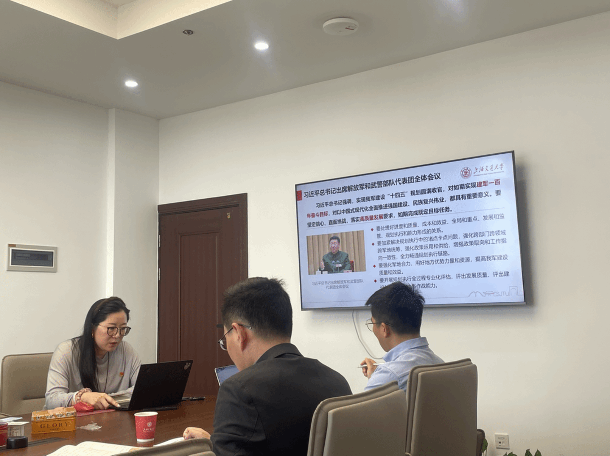 党支部组织委员刘精精做理论领学,带领全体党员围绕2025年全国两会精神开展专题学习。刘精精从全国两会概况、习近平总书记重要讲话、政府工作报告和交大两会之声四个方面入手,带领全体党员认真学习。
